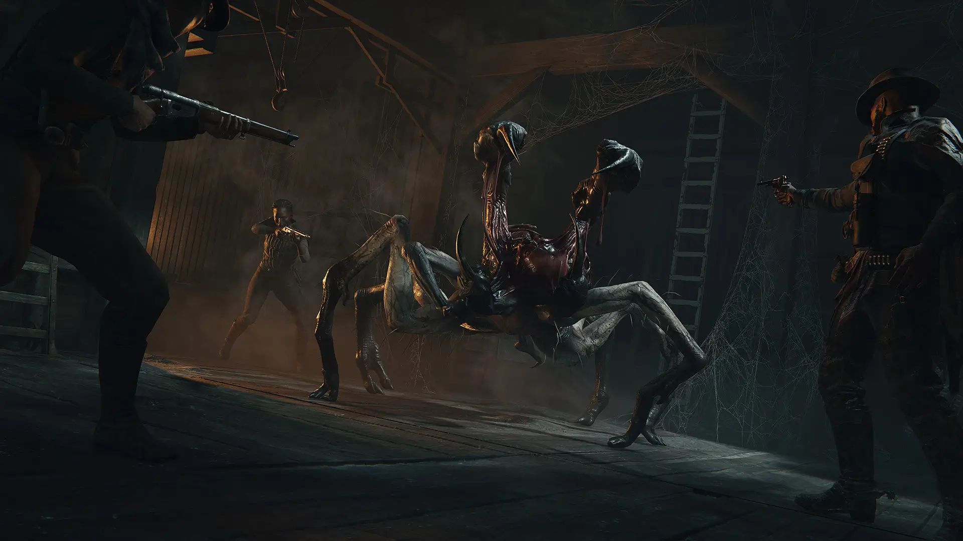 Black viscous liquid, a droplet the size of my fist, splattered onto my sleeve. Instinctively, I followed the tendril of viscous bile upward, toward the ceiling where her eye peered back. Hanging off a beam, ready to pounce, lurked the twisted and malformed mass of my quarry.