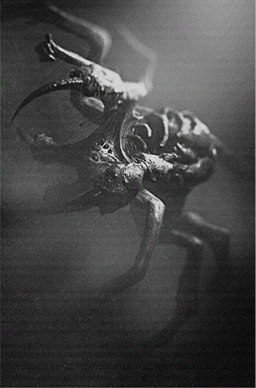 Thing is, one man don't have enough limbs. A few extra have to be grafted on. Some are still recognizably human, others, well, not. It's not exactly clear when one begins and another ends. Black observed some legs had as many as five joints. The mandibles are the most malformed, each two arms fused together, the strength to punch clean through a man.